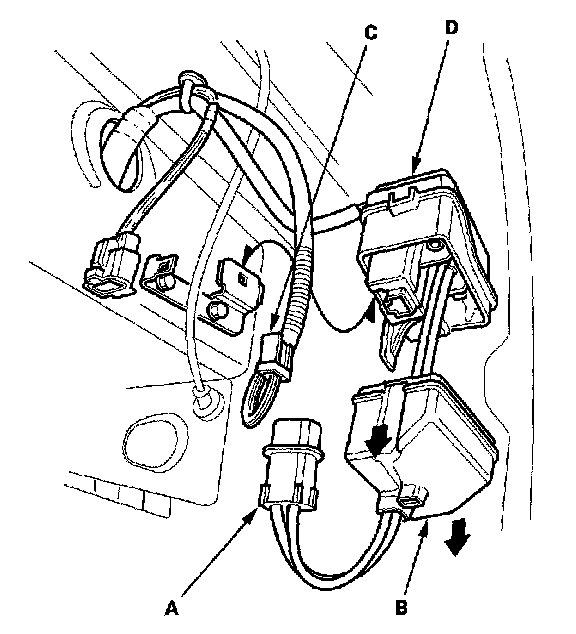 3. Remove the air pump electrical current sensor (D).