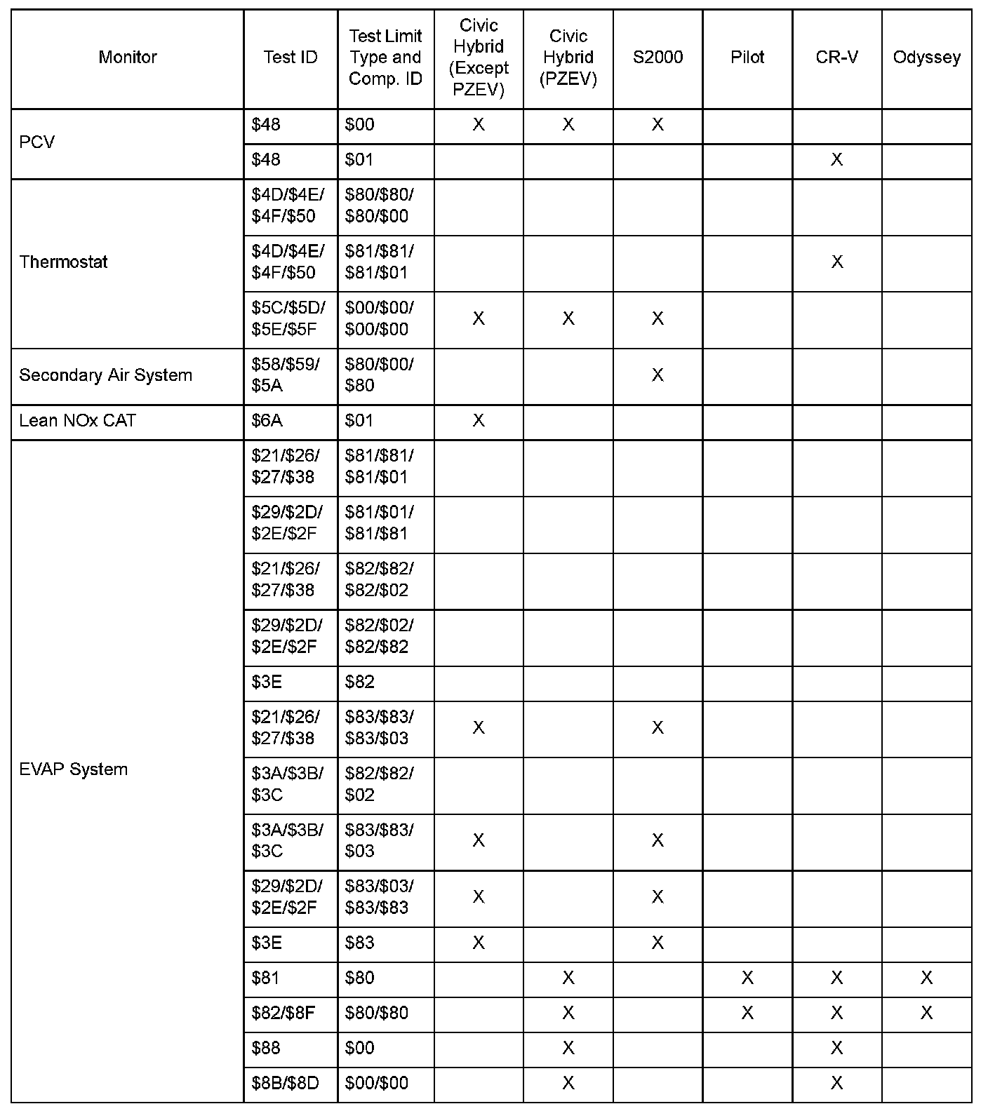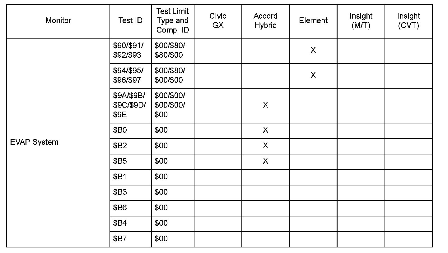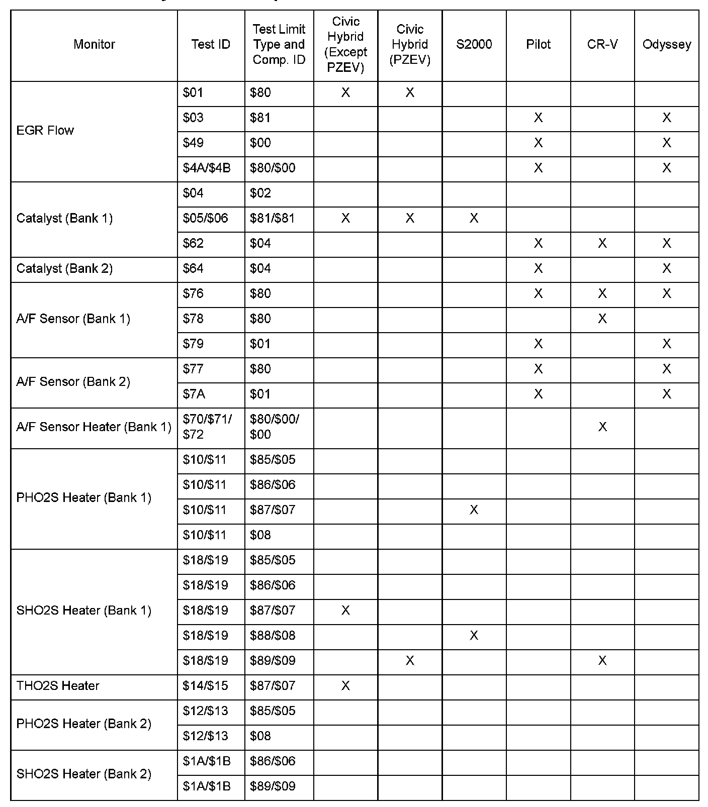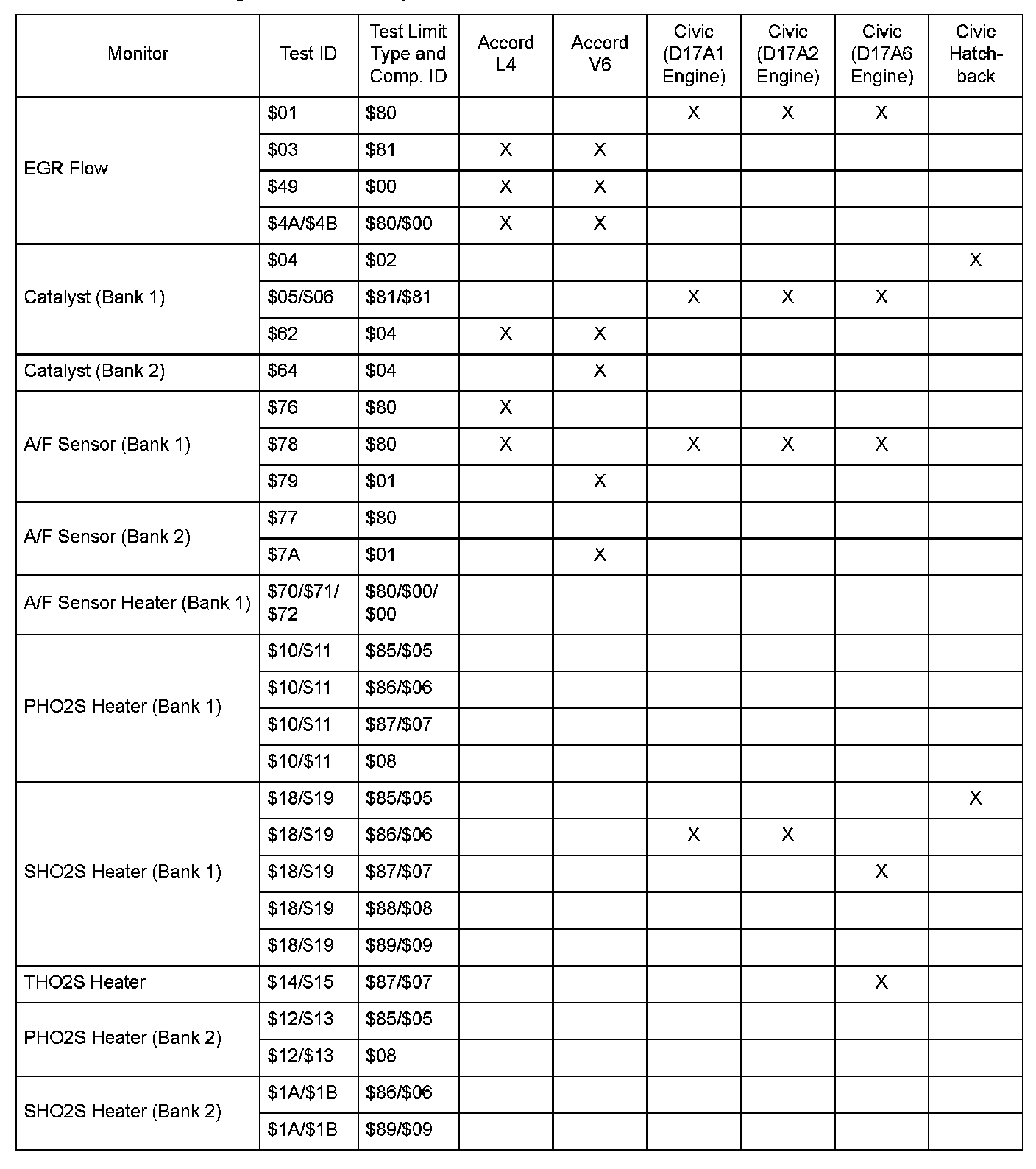 SAE J1979 Mode $06 Test Information: All 2005 Hondas
