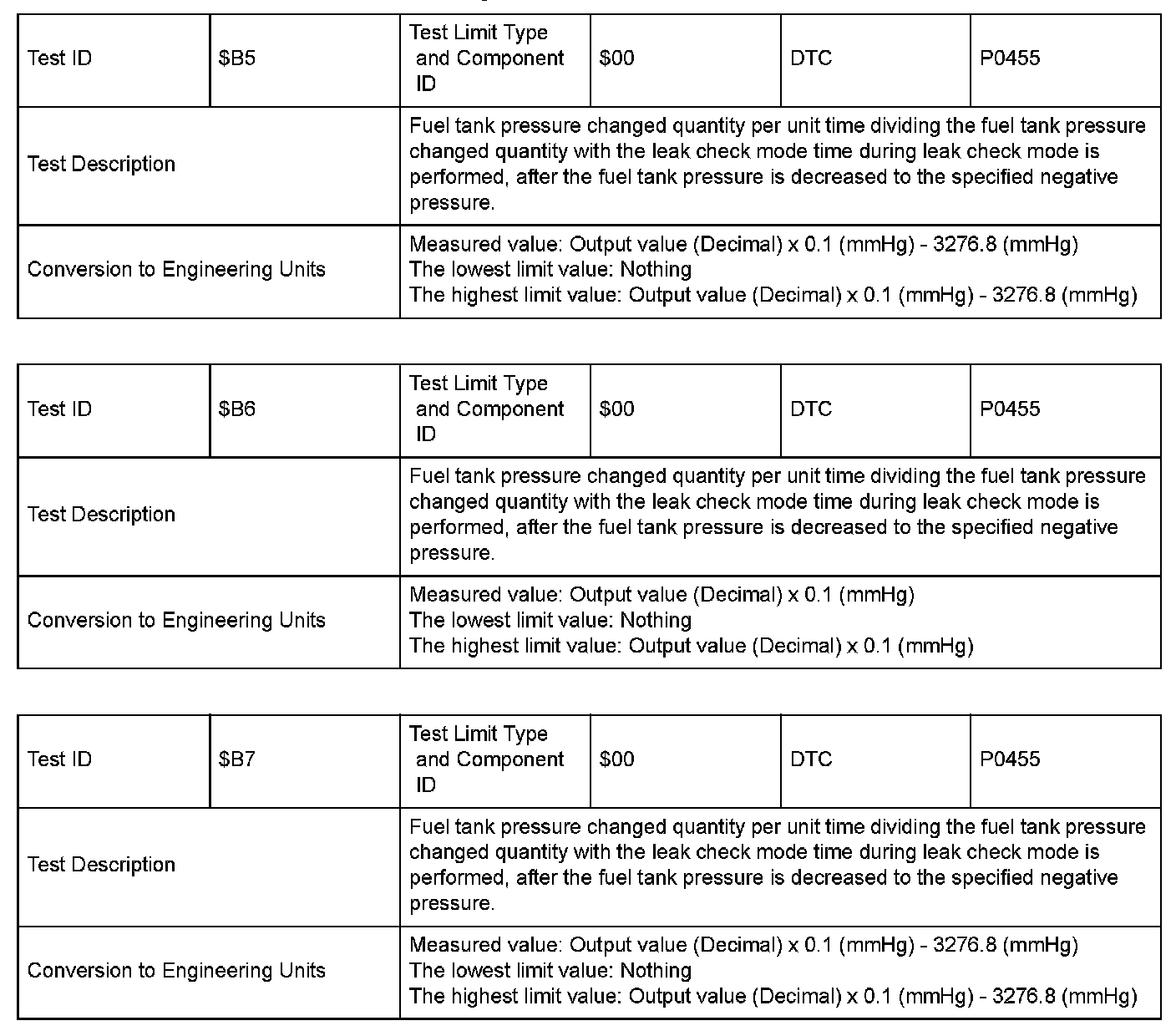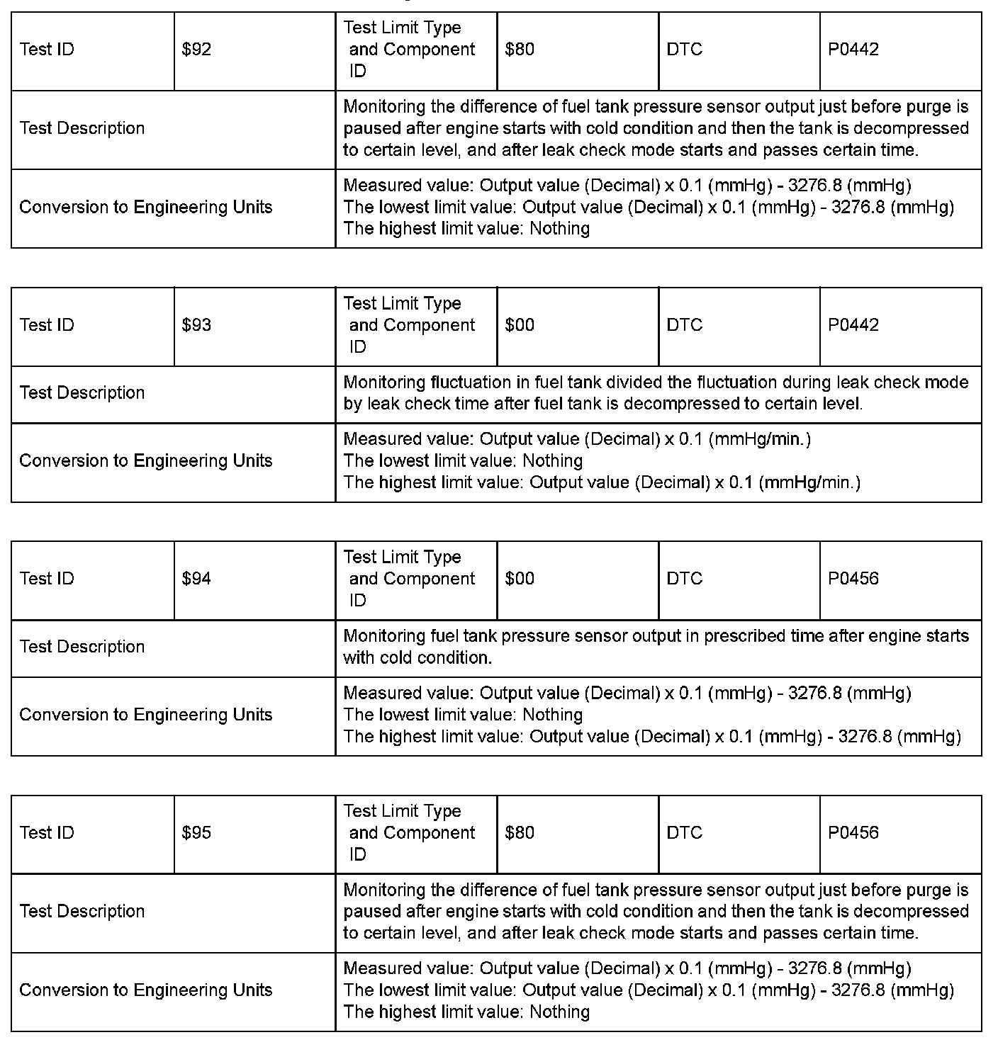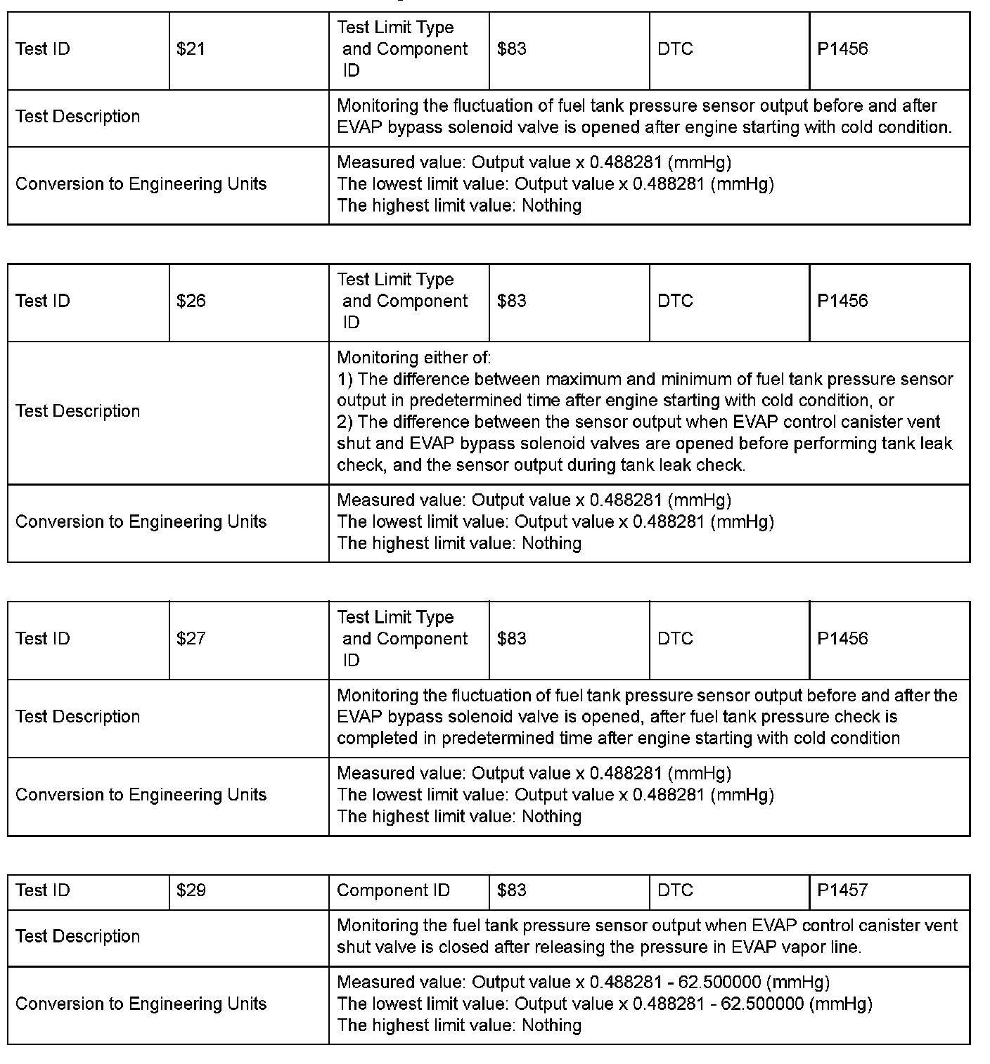 SAE J1979 Mode $06 Test Information: All 2005 Hondas