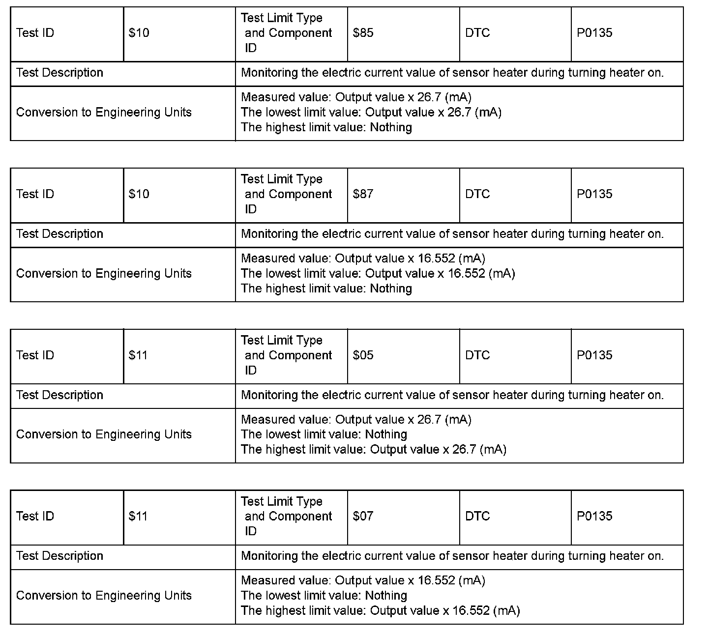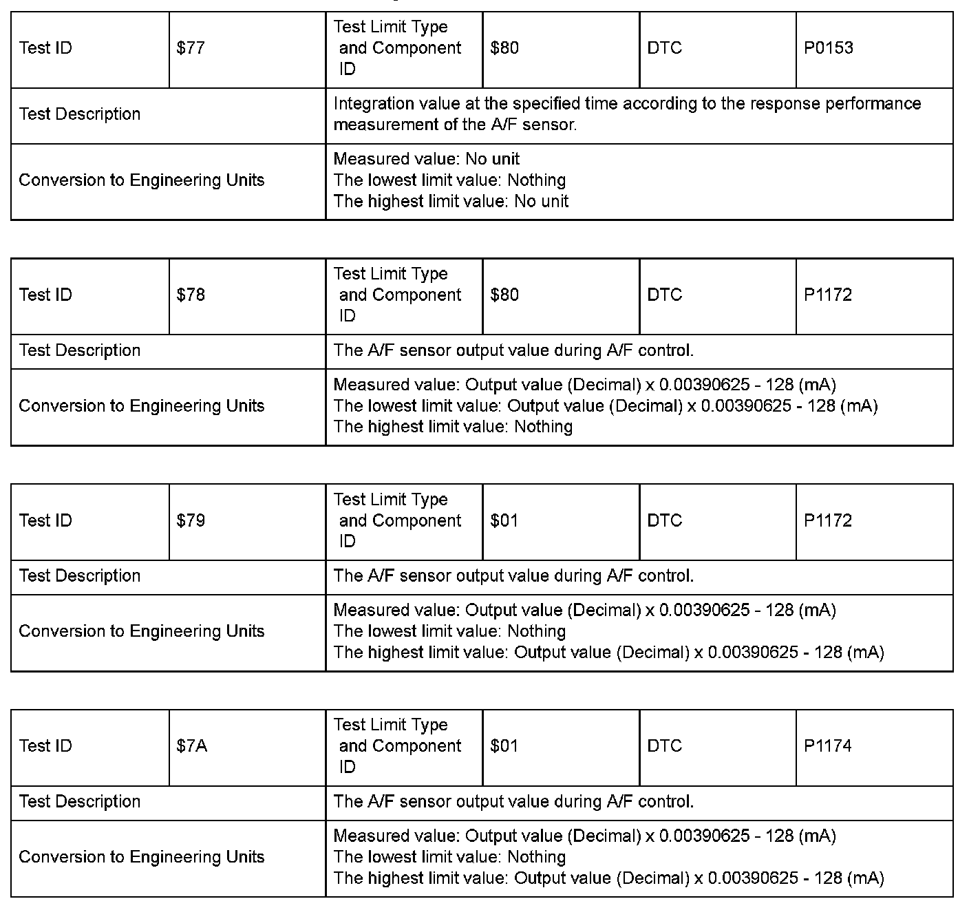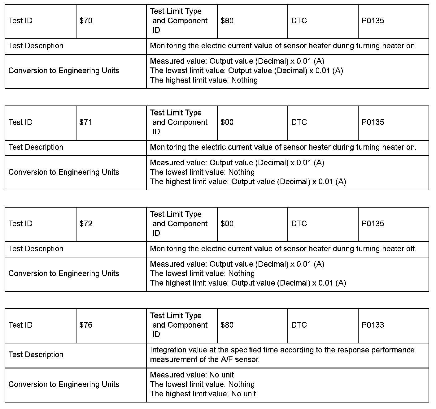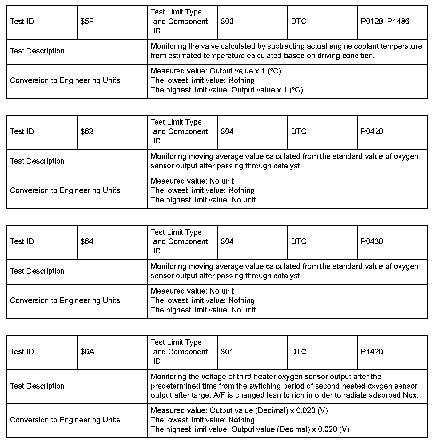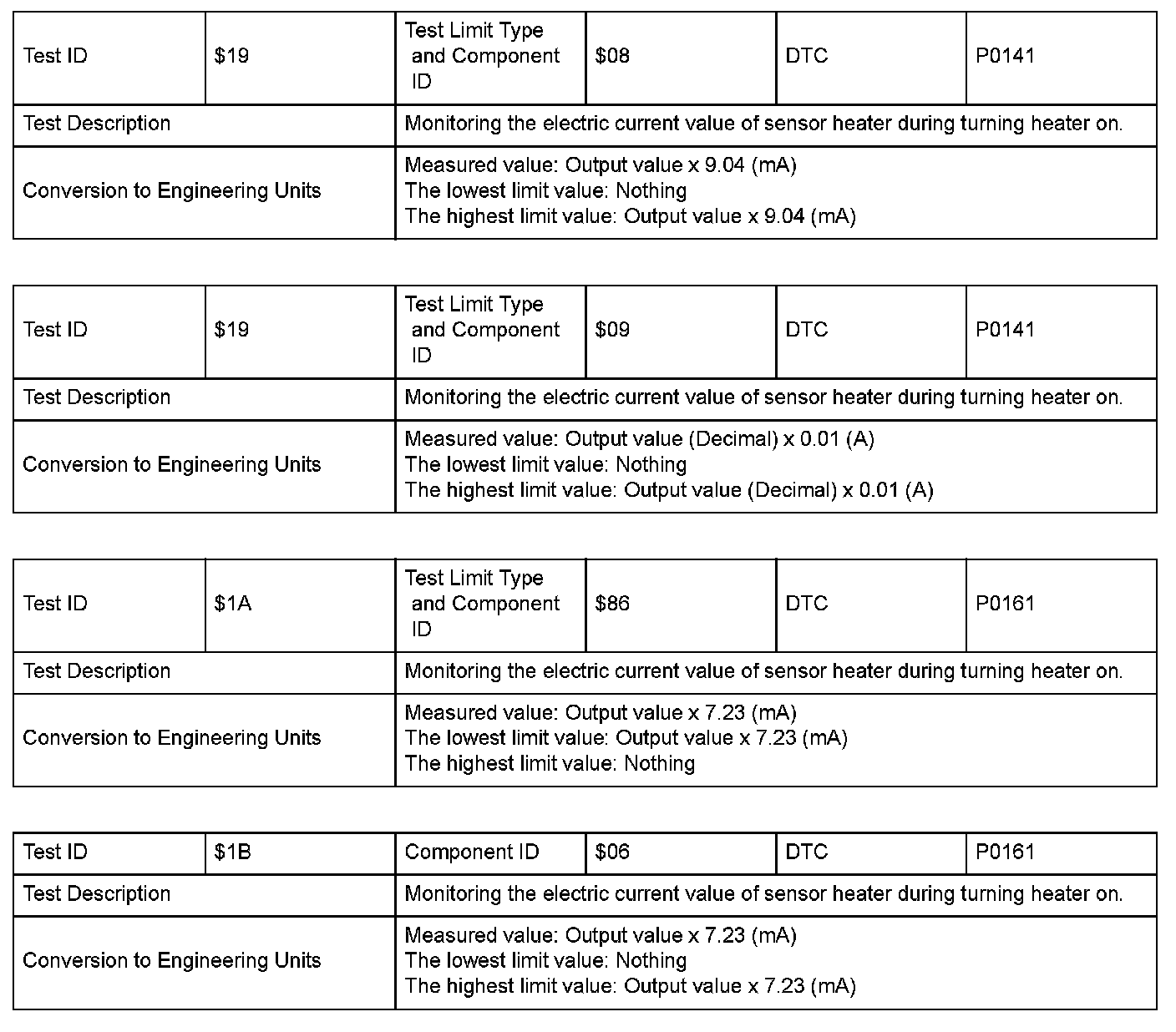 SAE J1979 Mode $06 Information by Test ID