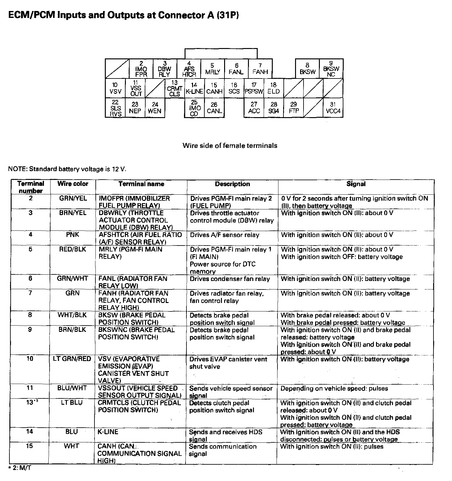 ECM/PCM Inputs And Outputs At Connector A (31P) Part 2: