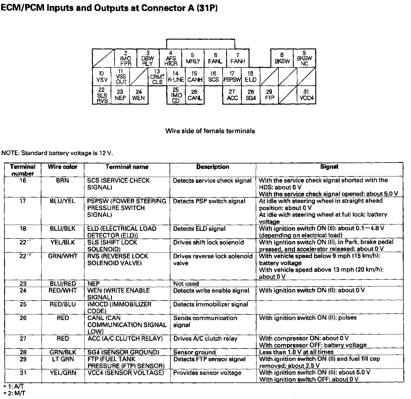 ECM/PCM Inputs And Outputs At Connector A (31P) Part 1: