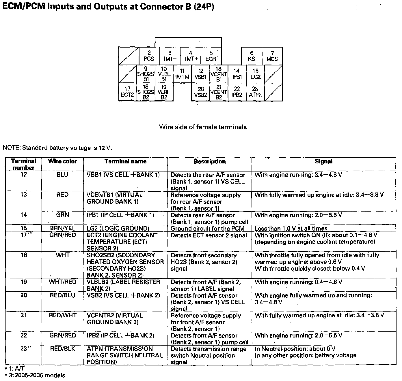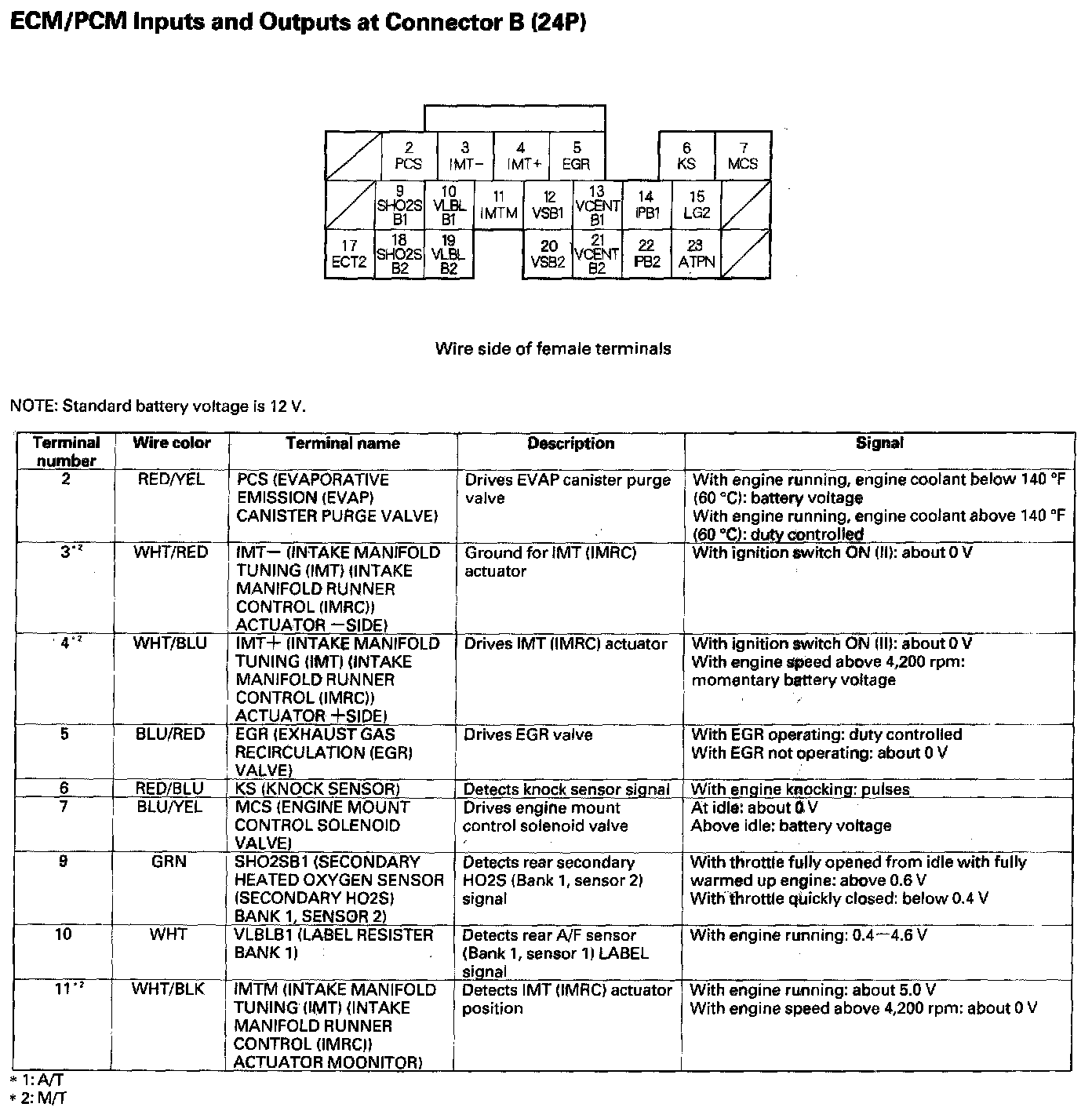 ECM/PCM Inputs And Outputs At Connector B (24P) Part 1: