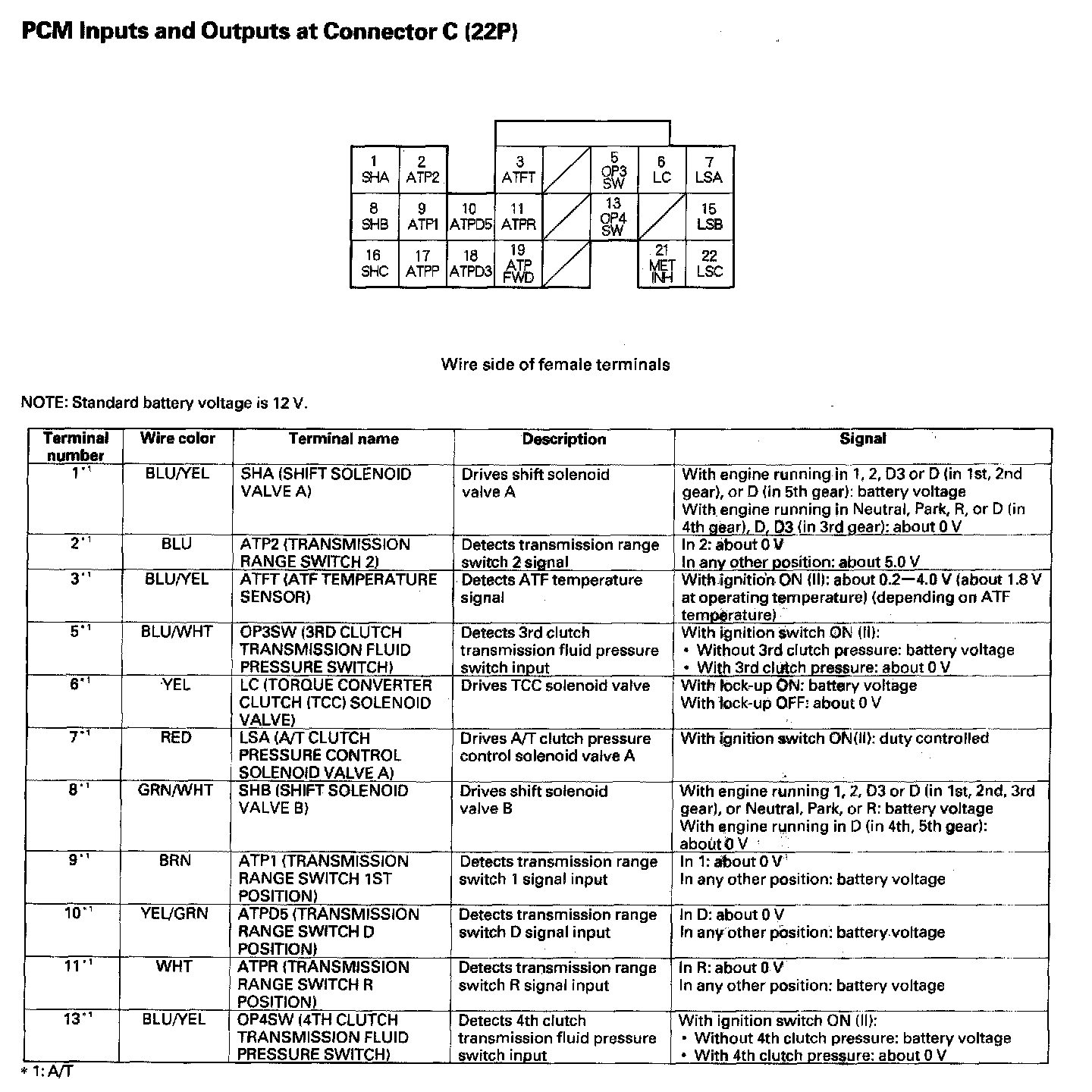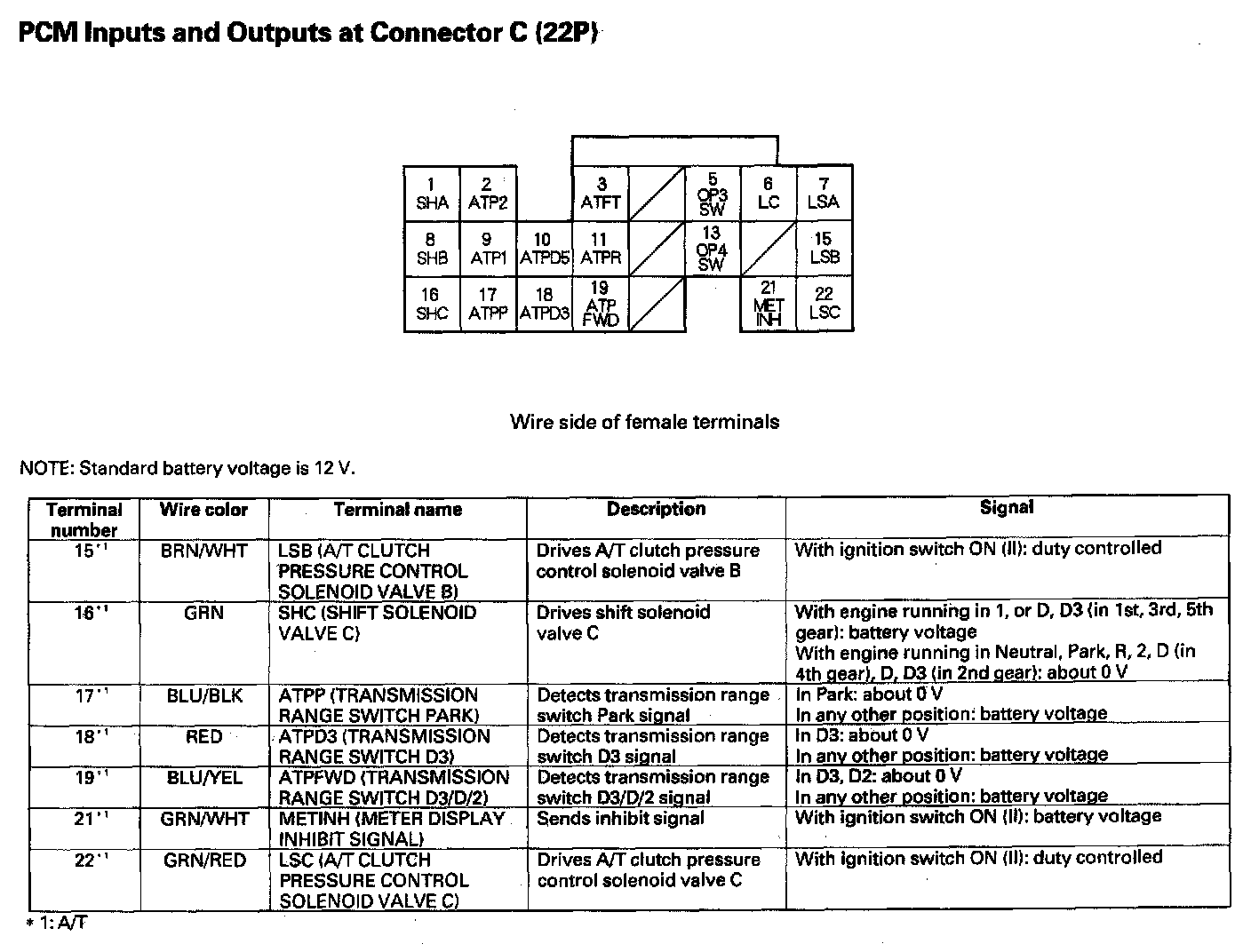 PCM Inputs And Outputs At Connector C (22P) Part 1: