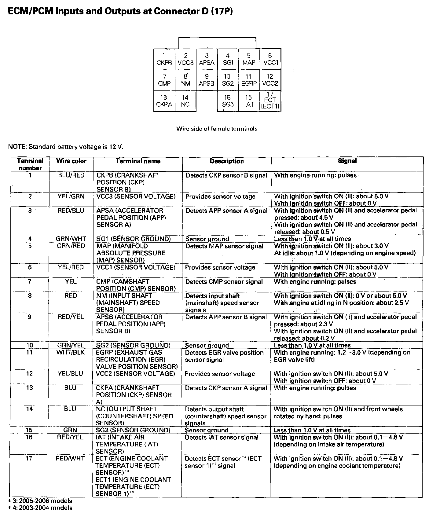 ECM/PCM Inputs And Outputs At Connector D (17P):