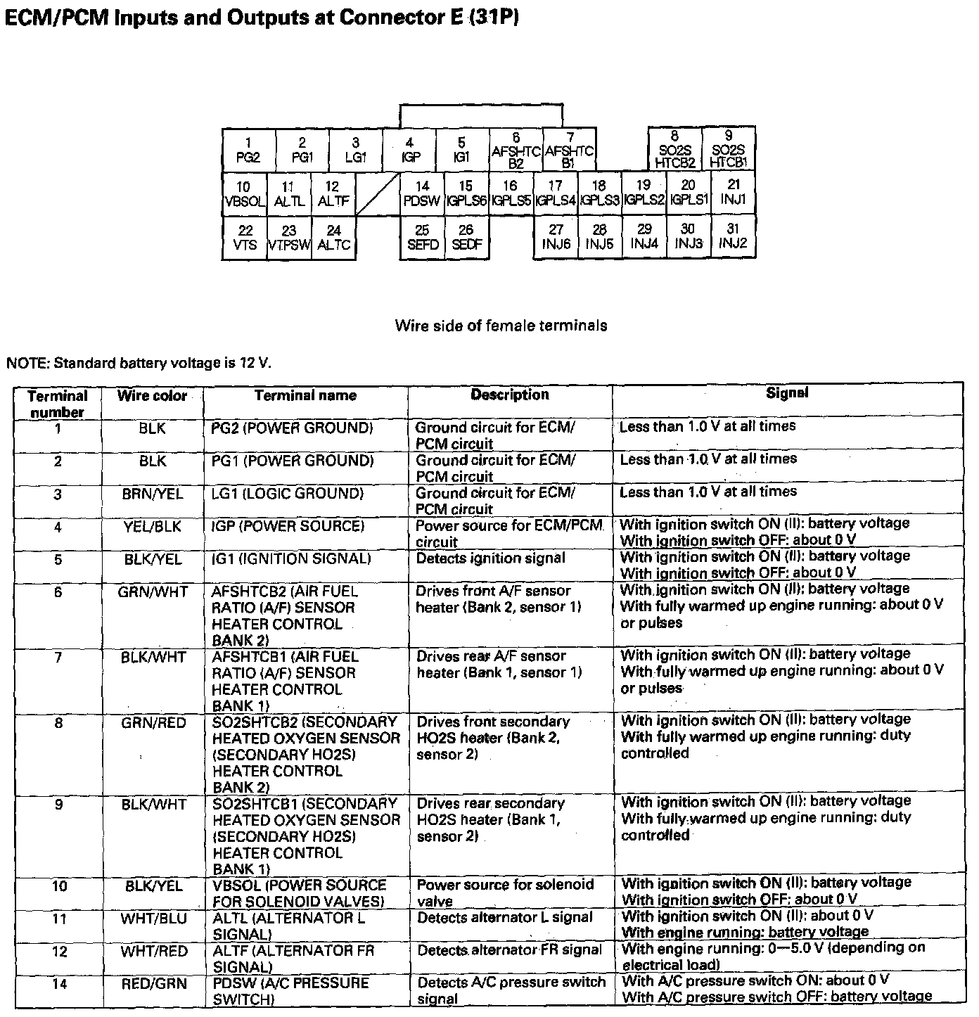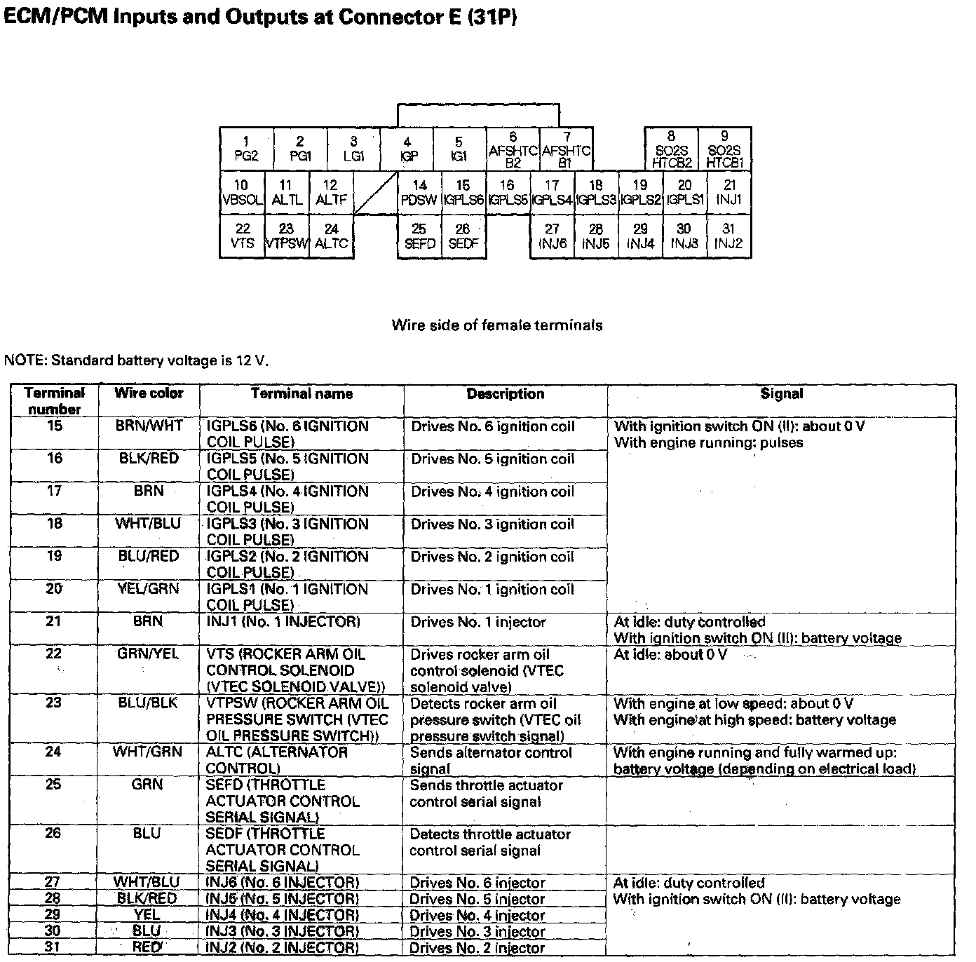 ECM/PCM Inputs And Outputs At Connector E (31P) Part 1: