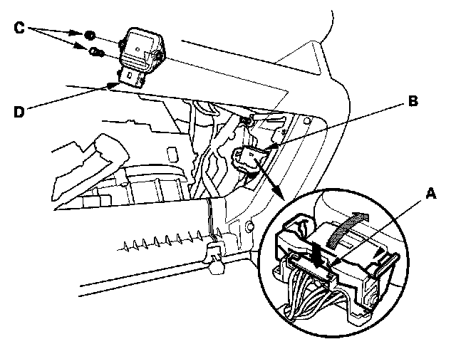 3. Remove the bolts (C), and the throttle actuator control module (D).