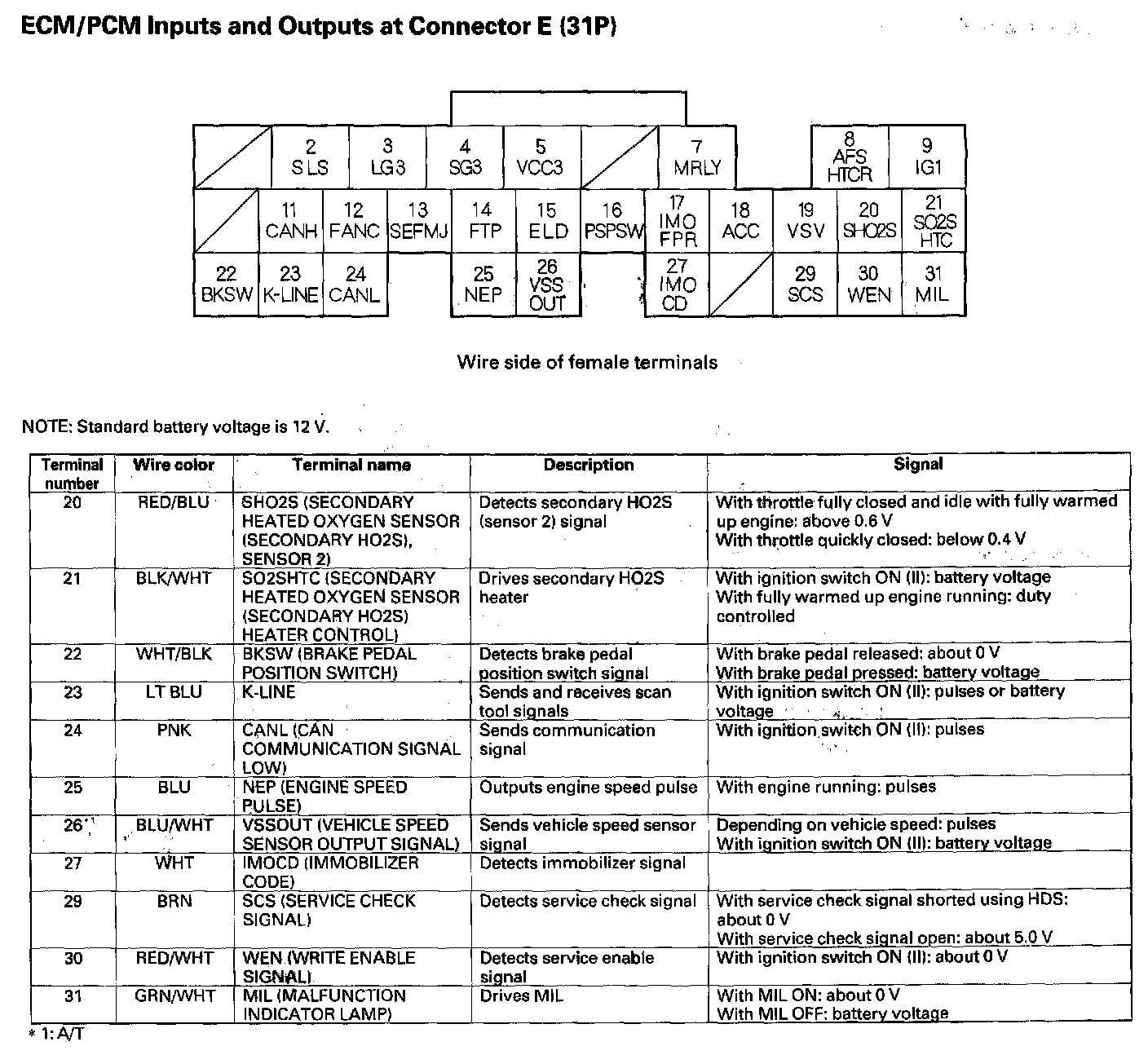 ECM/PCM Inputs And Outputs At Connector E (31P) Part 1: