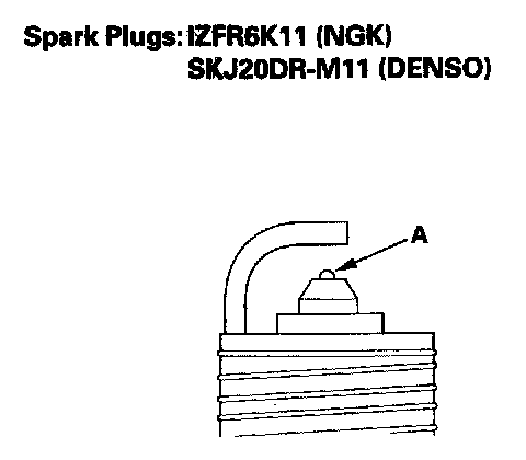 3. Do not adjust the gap of iridium tip plugs (A); replace the spark plug if the gap is out of specification.