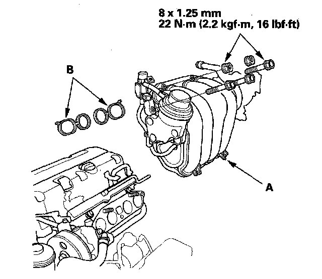 (A) and tighten the bolts/nuts in a crisscross pattern in two or three steps, beginning with the inner bolt. Using the new O-rings (B).