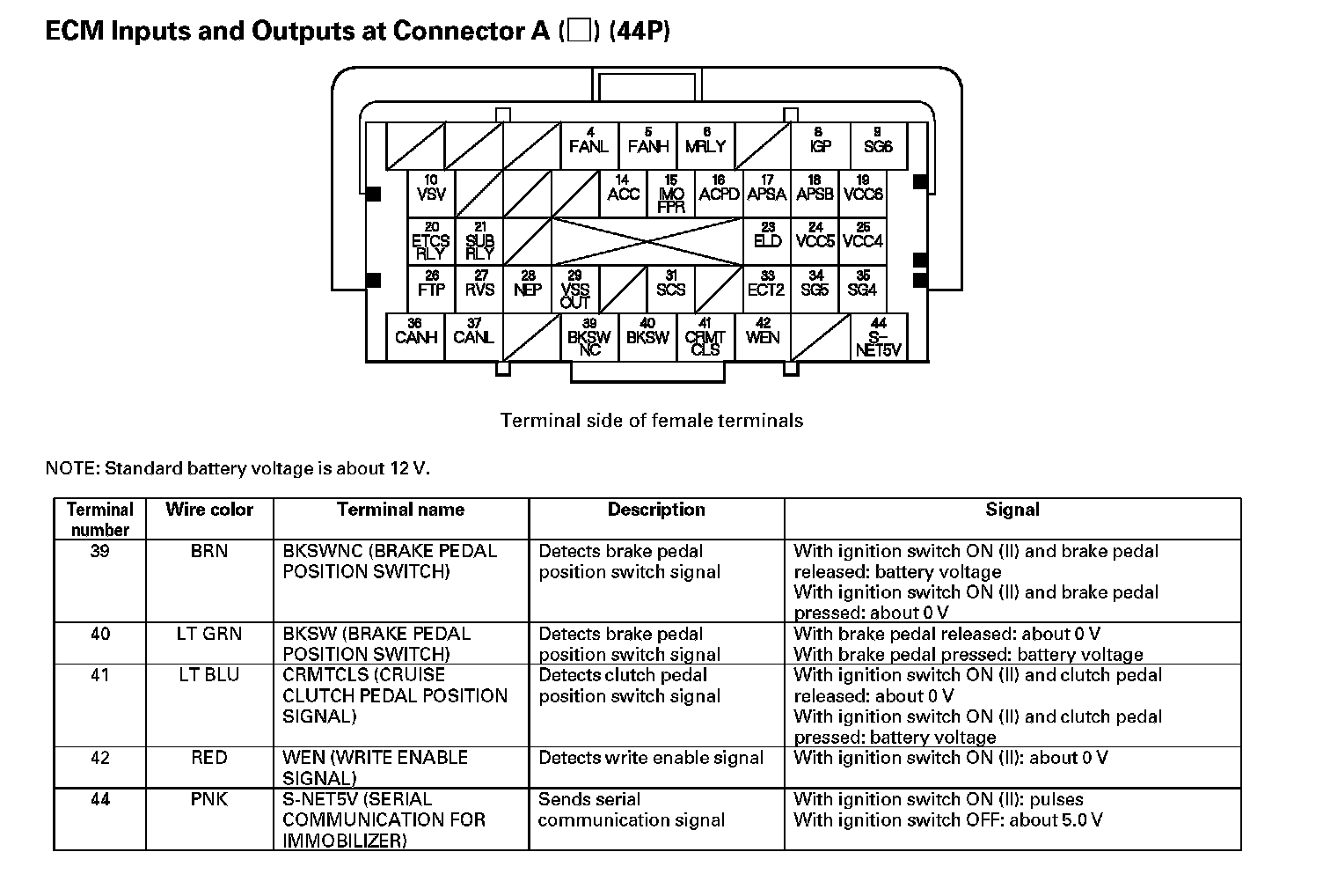 ECM Inputs And Outputs At Connector A (44P) Part 1: