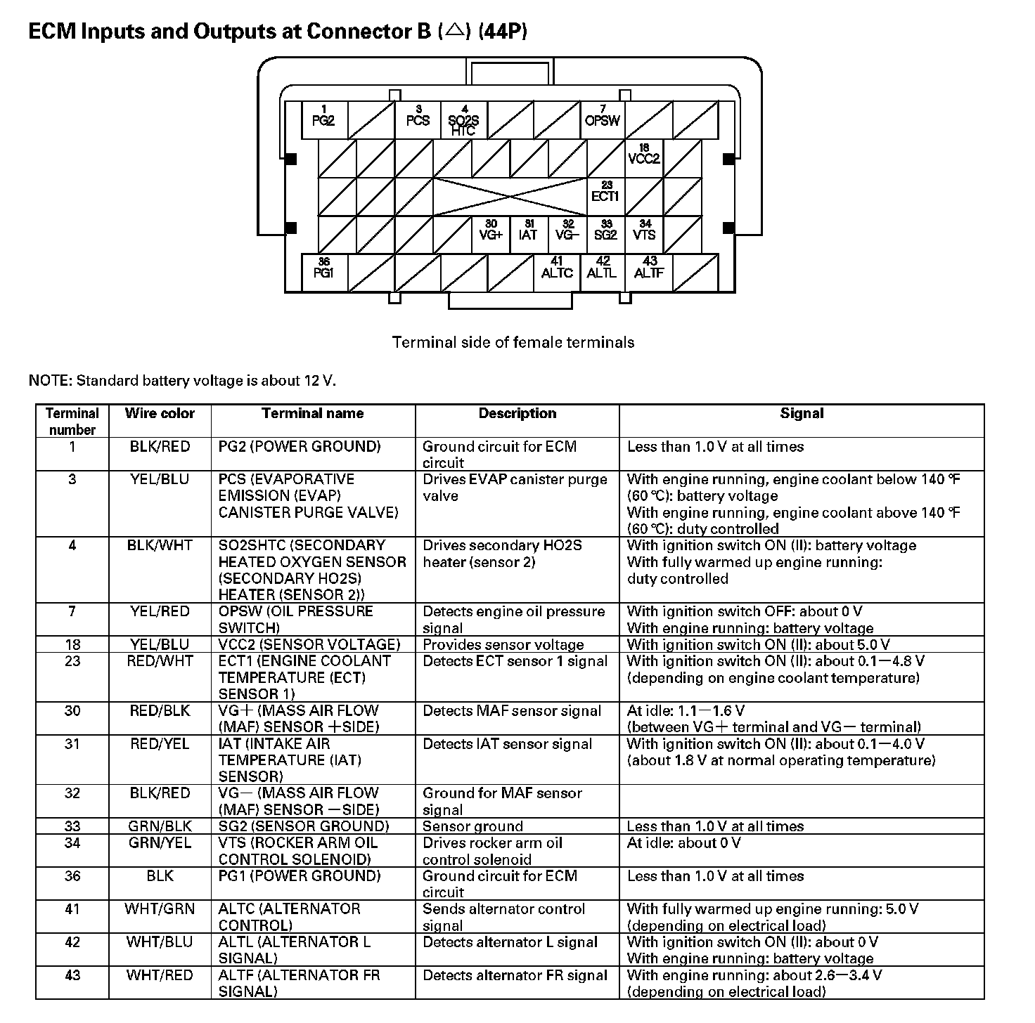 ECM Inputs And Outputs At Connector B (44P):