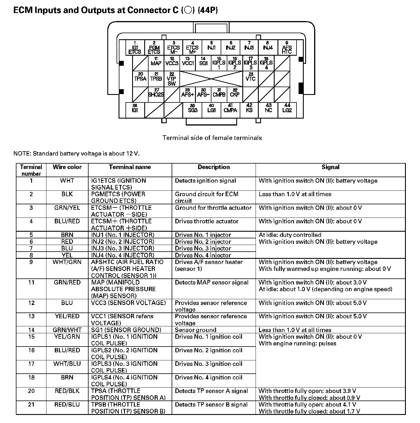 ECM Inputs And Outputs At Connector C (44P) - Part 1: