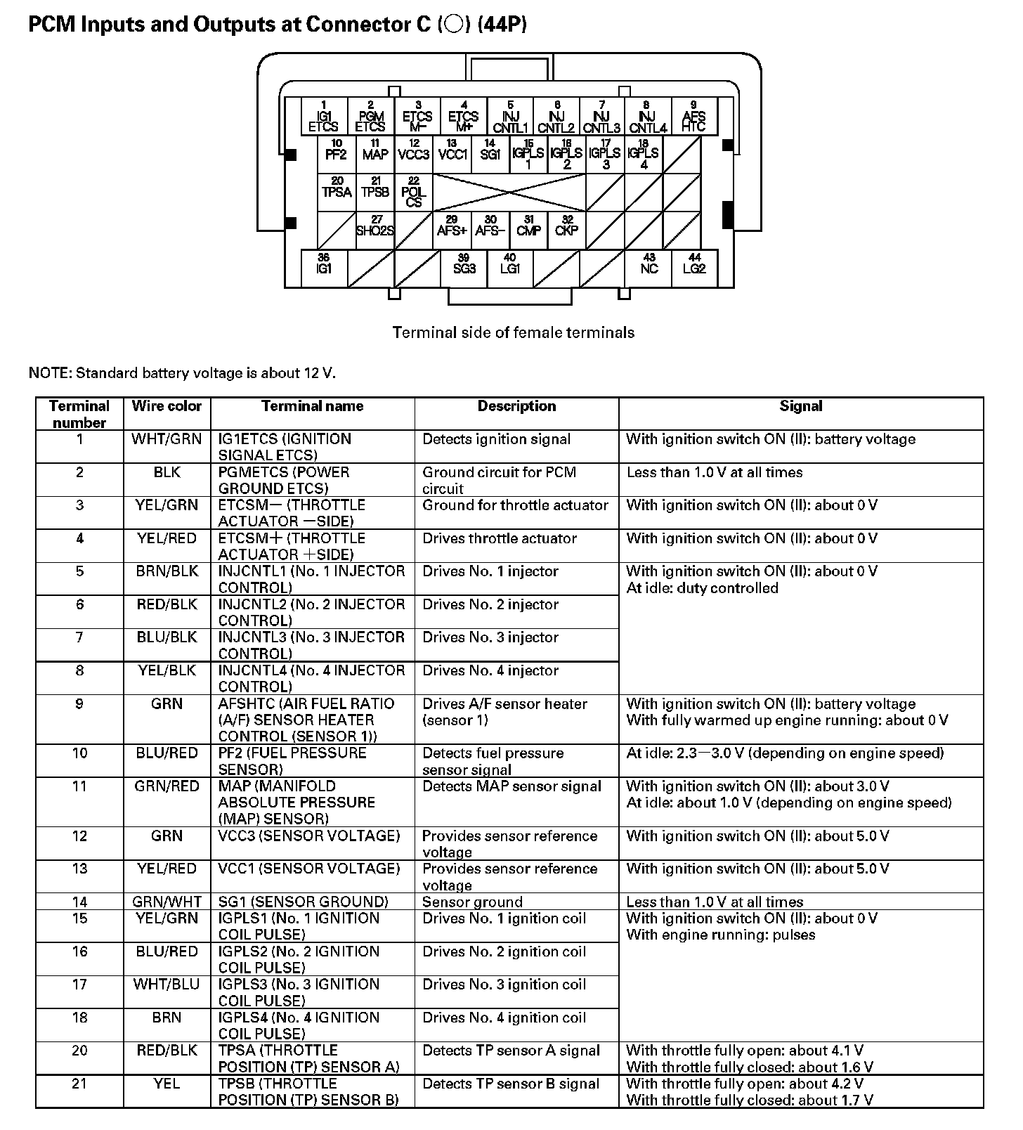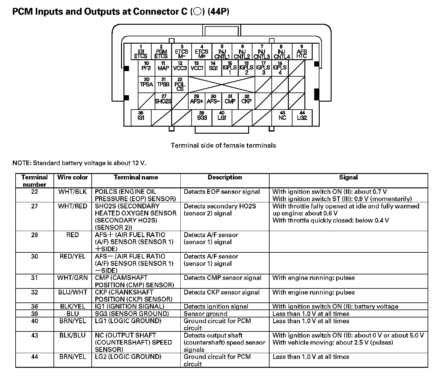 PCM Inputs And Outputs At Connector C (44P) - Part 1: