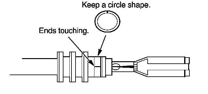 3. Strip the insulation off the end of the wire so the wire fits in the new terminal as shown. (If the wire has a wire seal, replace it with a new one from the kit.)