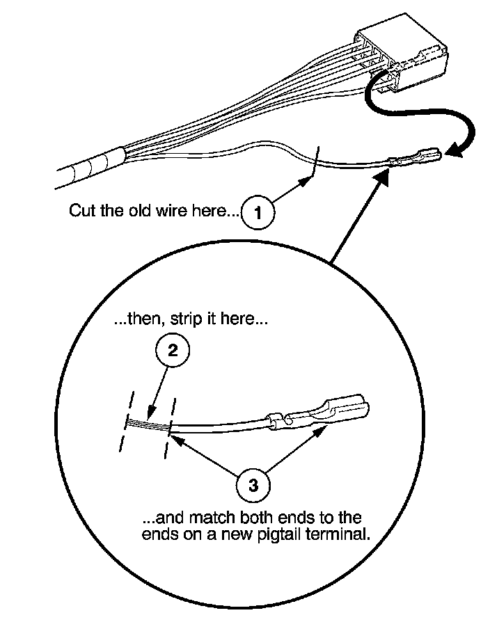 HOW TO INSTALL PIGTAIL TERMINALSPigtail terminals (short pieces of wire with a factory crimped terminal) are used when the wire is too short or when access to the connector is too restricted to make a terminal repair.