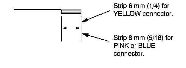 7. If you are using a yellow splice connector, strip about 6 mm (1/4 inch) of insulation off the ends of both wires. If you are using a pink or blue splice connector, strip off about 8 mm (5/16 inch) of insulation.