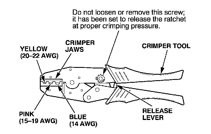 8. Put the splice connector in the proper size slot in the Crimper Tool, slide it to one end (where the flare begins), and close the crimper handles far enough to hold it in place. To release the ratchet mechanism at any point after the first click, squeeze the handles slightly and push the release lever, then let the handles open.