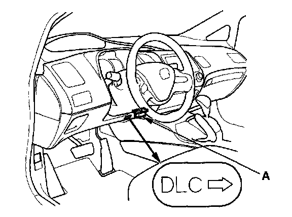 2. Connect the HDS to the data link connector (DLC) (A) located under the driver's side of the dashboard.