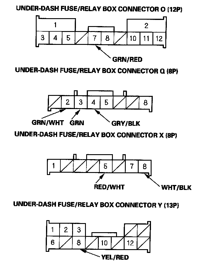 3. Disconnect the under-dash fuse/relay box connectors O, Q, X and Y.