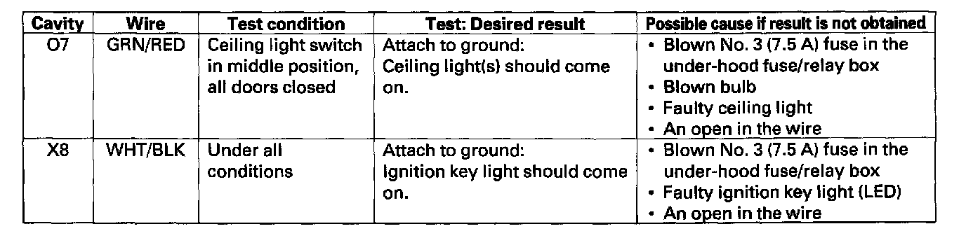 Home >> Honda >> 2006 >> Element 2WD L4-2.4L >> Repair and Diagnosis >> Lighting and Horns >> Interior Lighting Module >> Testing and Inspection