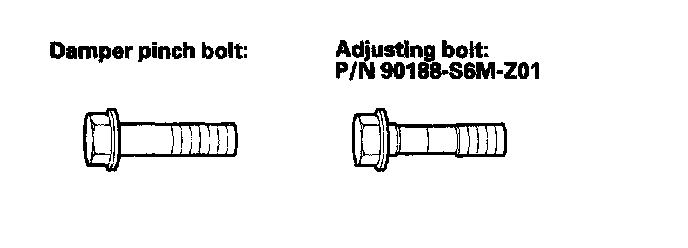 NOTE: The camber angle can be adjusted up to ±15' (center of tolerance) by replacing one damper pinch bolt with the adjusting bolt. The camber angle can be adjusted up to ±30' by replacing both damper pinch bolts with the adjusting bolts.