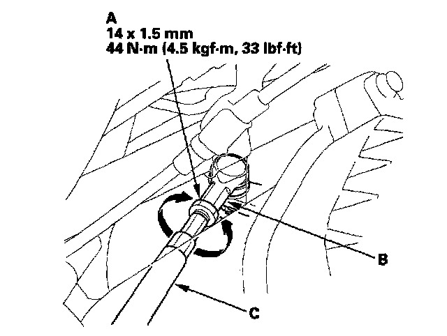 4. Turn the tie-rod arm (C) until the front toe is within specifications.