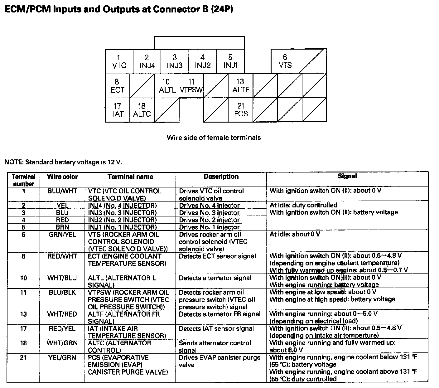ECM/PCM Inputs And Outputs At Connector B (24P):