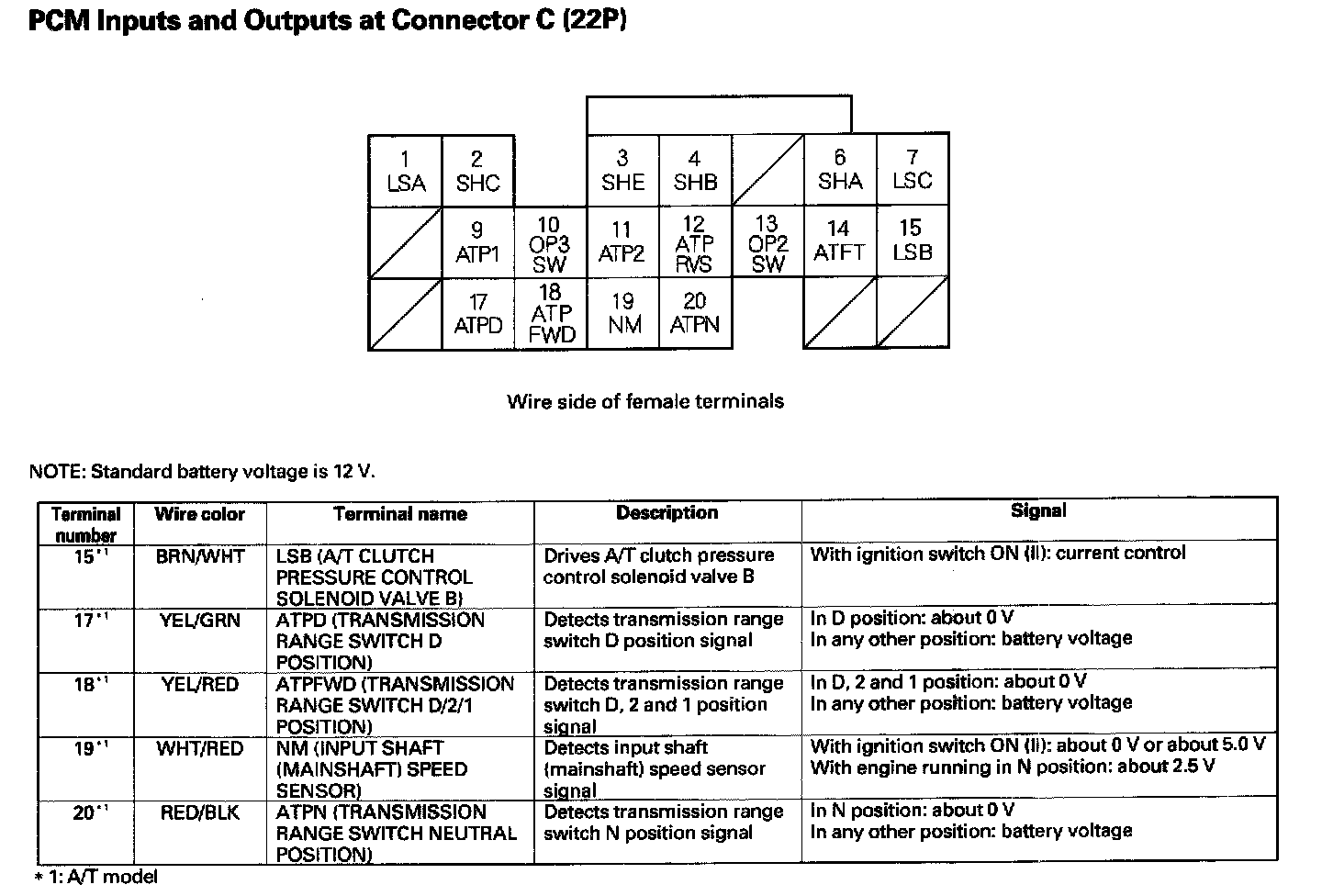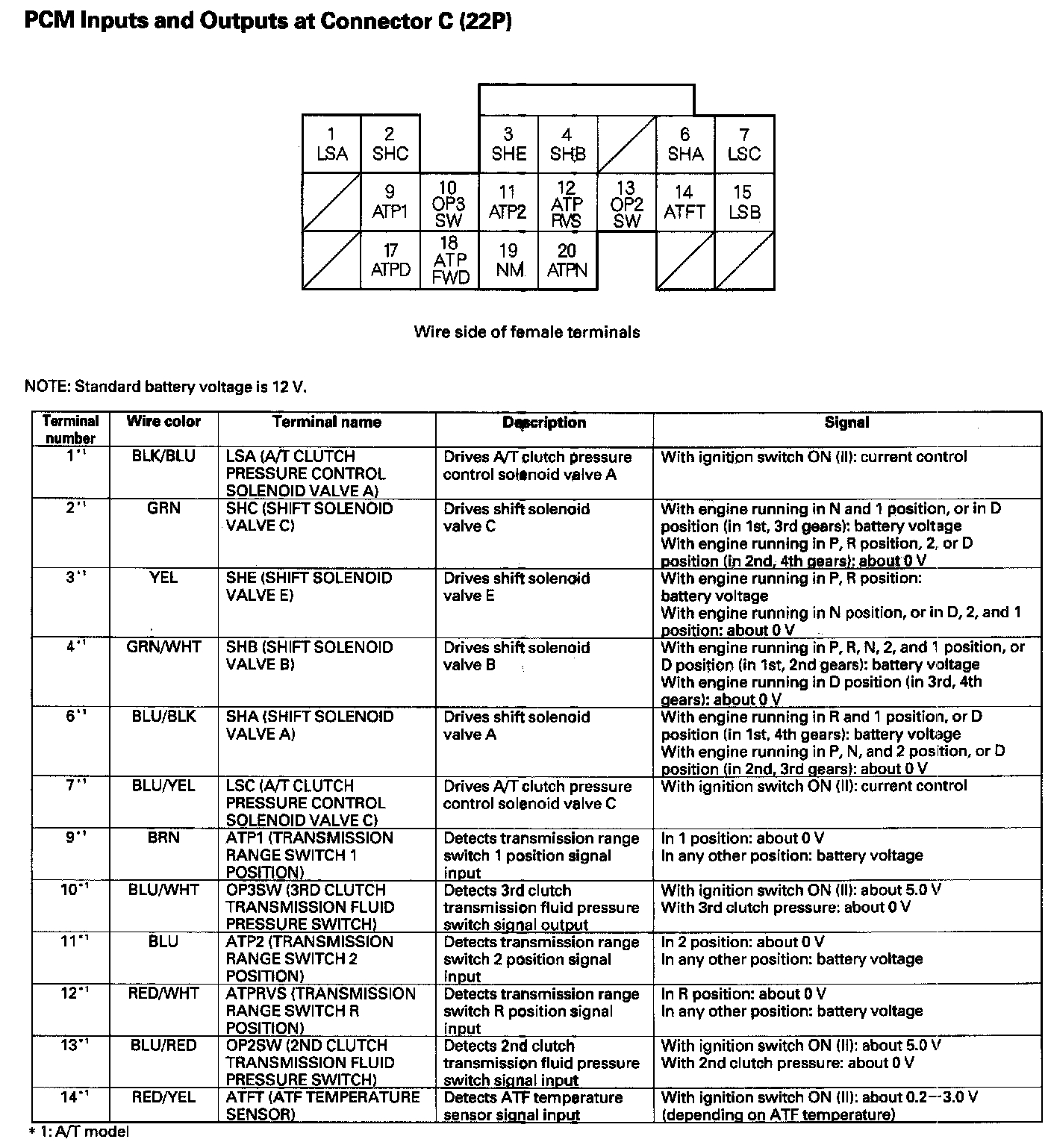 PCM Inputs And Outputs At Connector C (22P) Part 1: