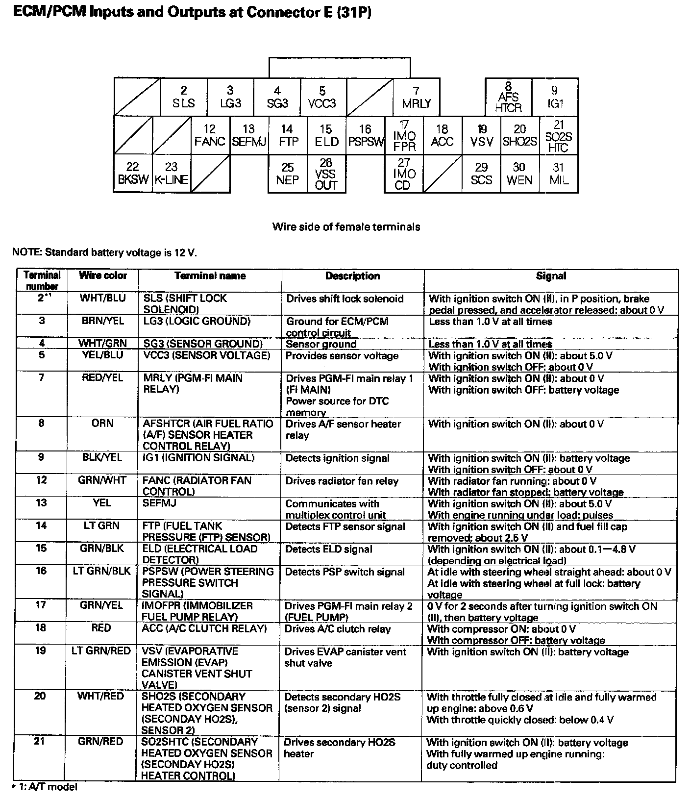 ECM/PCM Inputs And Outputs At Connector E (31P) Part 2: