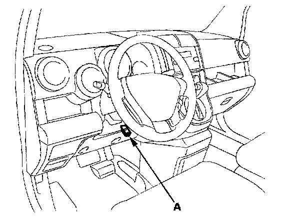 1. Connect the HDS or the Honda interface module (HIM) to the data link connector (DLC) (A) located under the driver's side of the dashboard.