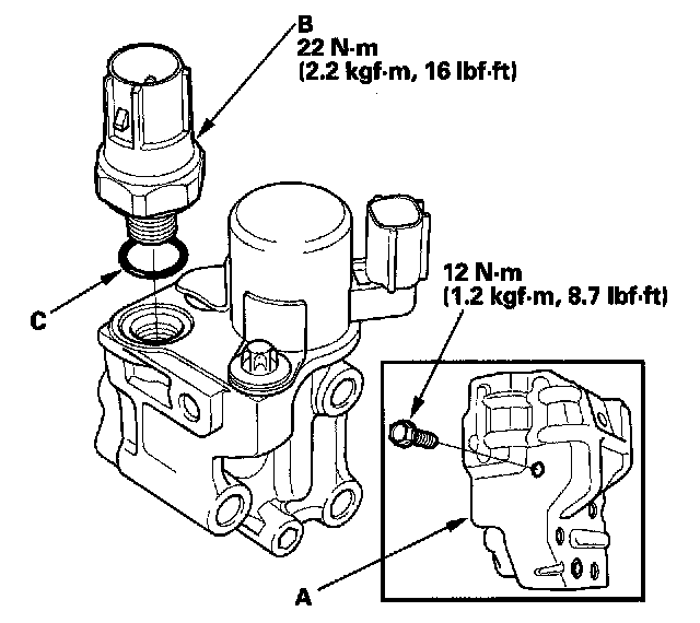 4. Install the switch in the reverse order of removal with a new O-ring (C).