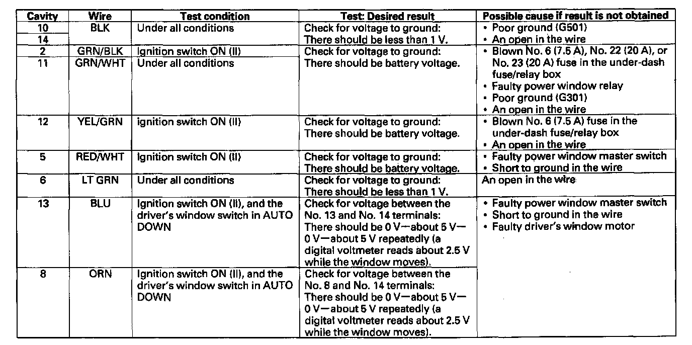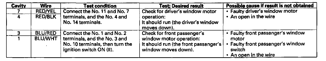 Master Switch Input TestNOTE: The power window control unit is built into the power window master switch, and it only controls the driver's window operations.
