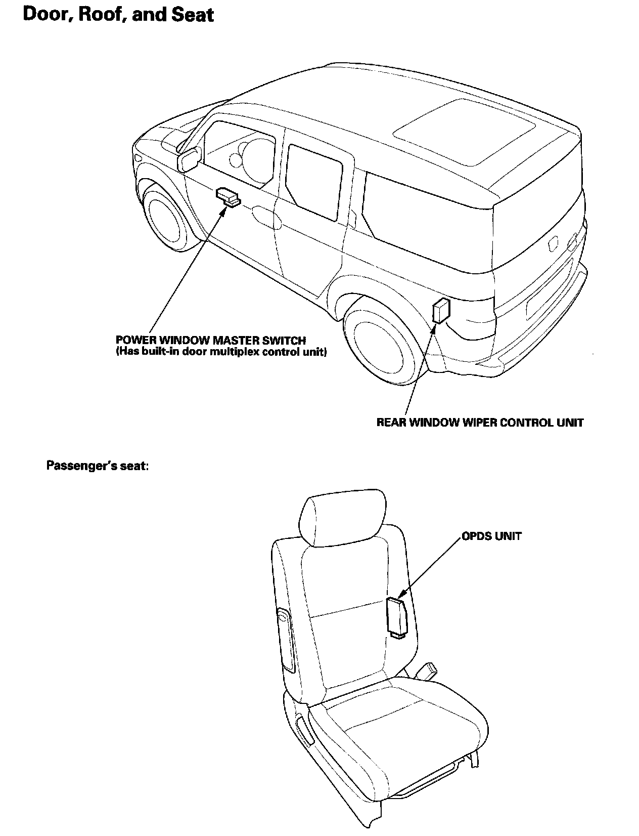 Relay And Control Unit Locations - Door,Roof And Seat: