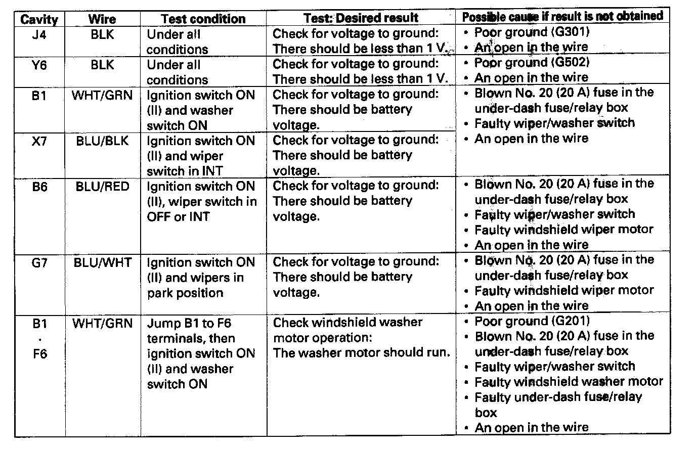 Home >> Honda >> 2006 >> Element 2WD L4-2.4L >> Repair and Diagnosis >> Wiper and Washer Systems >> Wiper Control Module >> Testing and Inspection >> Control Unit Input Test