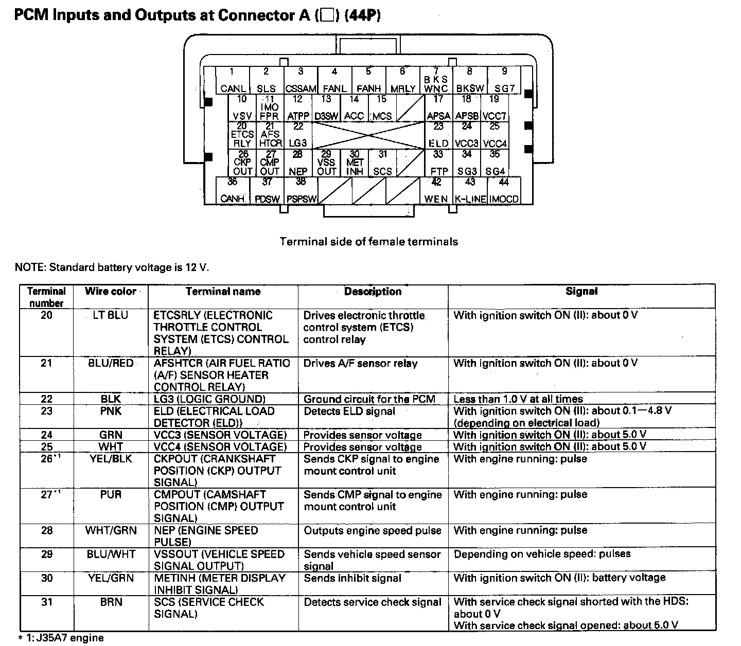 PCM Inputs And Outputs At Connector A (44P) Part 1: