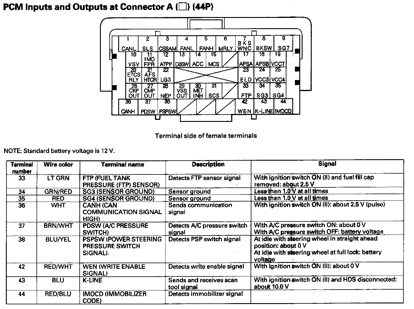 PCM Inputs And Outputs At Connector A (44P) Part 4: