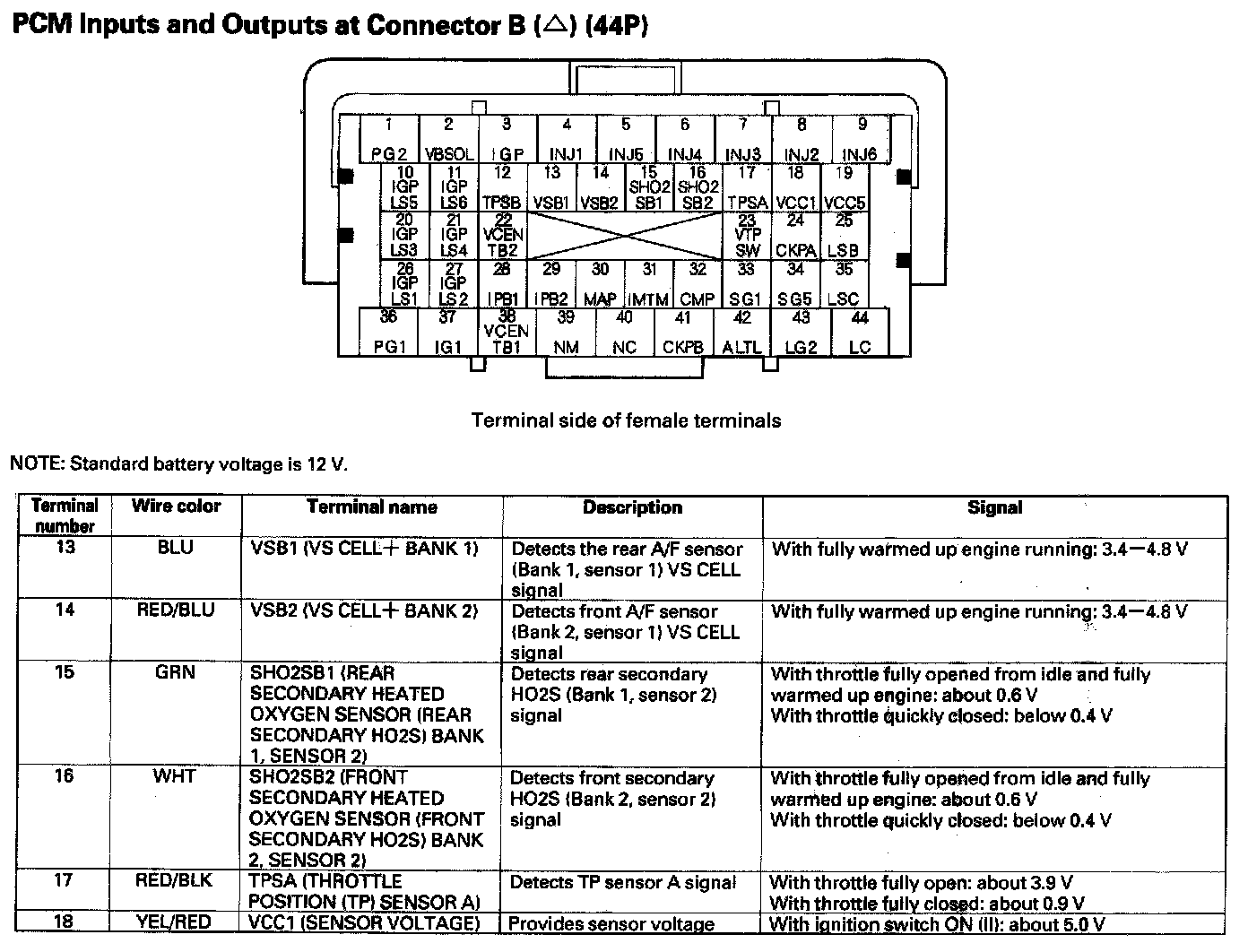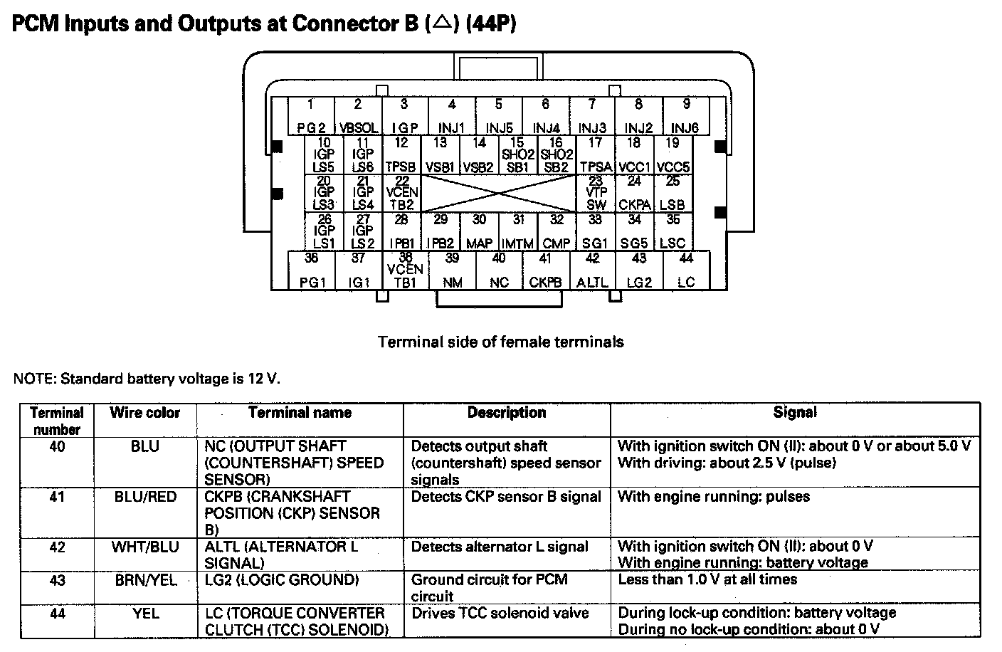 PCM Inputs And Outputs At Connector B (44P) Part 4:
