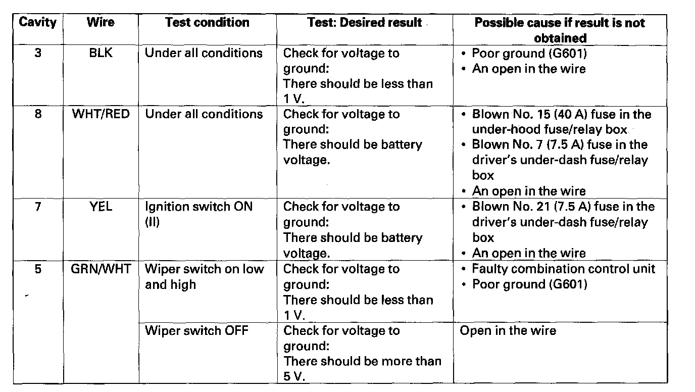 Wiper/Washer Switch (Combination Switch Control Unit) Input Test1. Before troubleshooting the wiper/washer system, troubleshoot the B-CAN System Diagnosis Test Mode A.