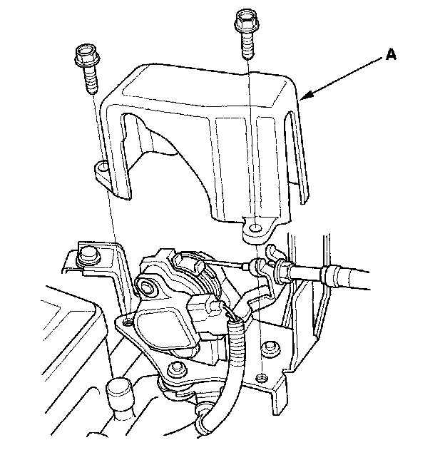 1. Remove the bolts and the throttle cable cover (A).