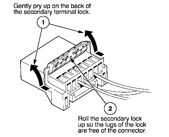 - If it has a secondary terminal lock, go to Connectors With a Secondary Lock. A secondary lock, found on most connectors on some models, is an additional locking device on the connector housing as a backup for the primary lock on the terminal.