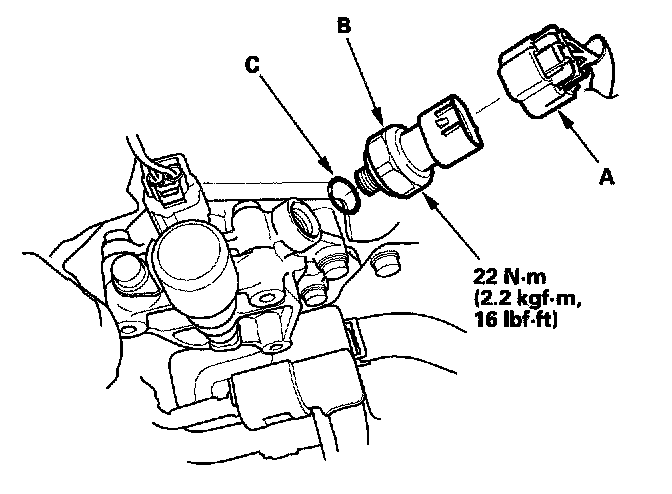 Install the EOP sensor in the reverse order of removal with a new O-ring (C).