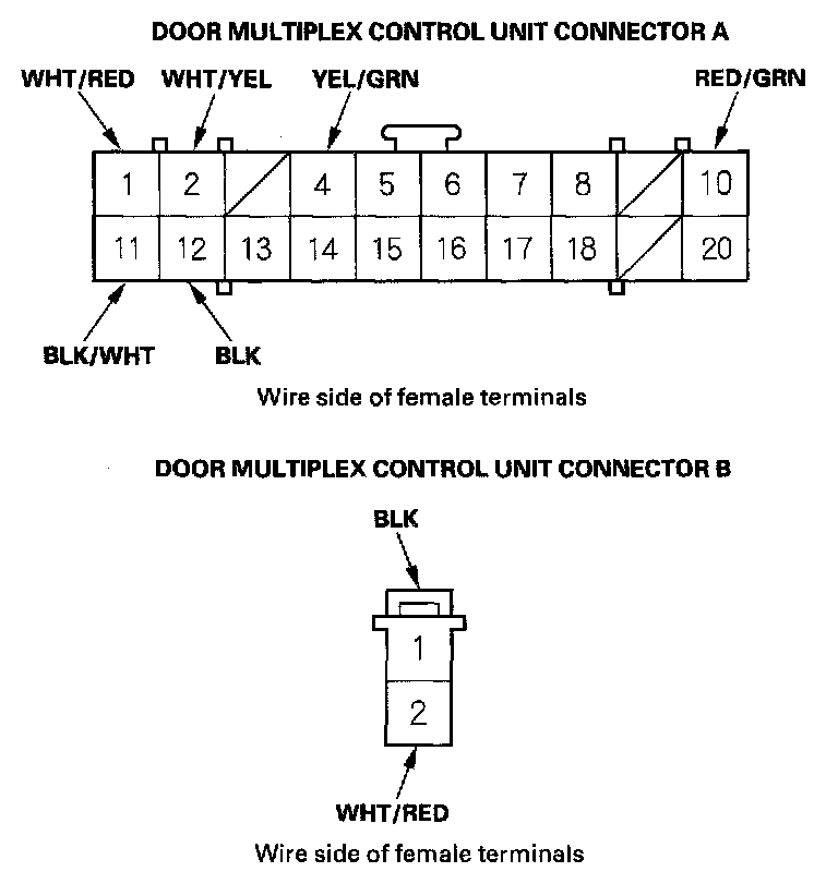 12. Reconnect the connector to the door multiplex control unit, and make these input tests at the connectors.