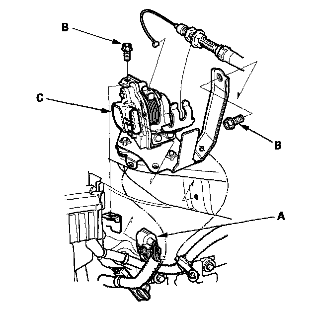 3. Remove the bolts (B) and the APP sensor (C).