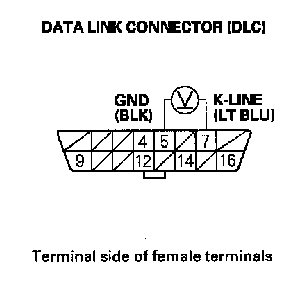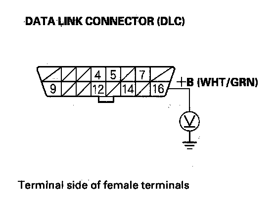 3. Measure voltage between DLC terminals No. 5 and No.16.