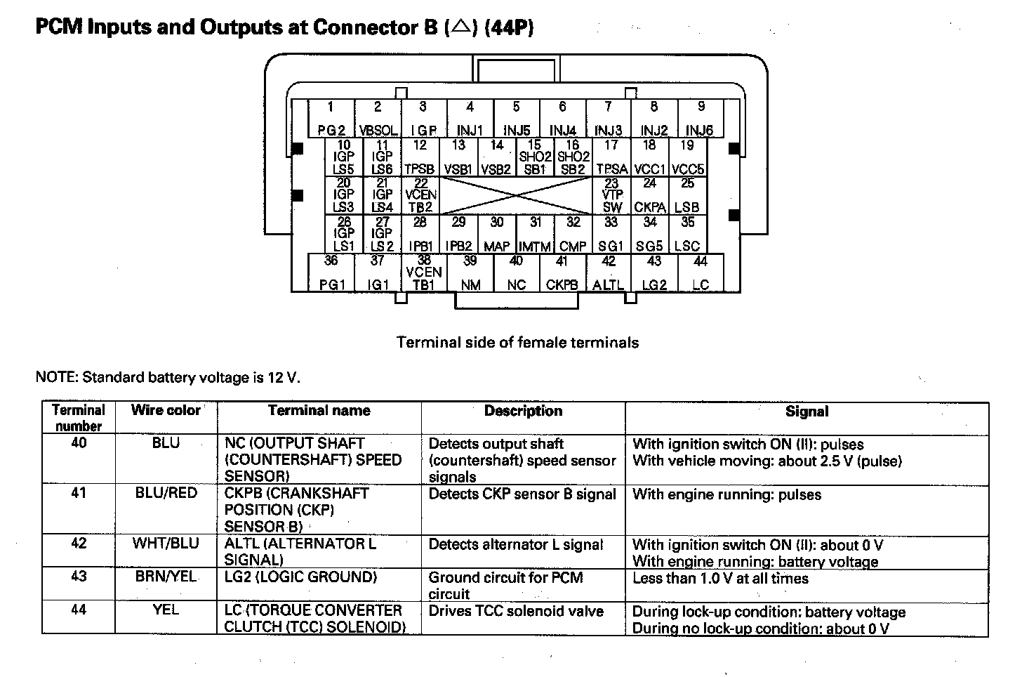 PCM Inputs and Outputs at Connector B (44P) Part 1: