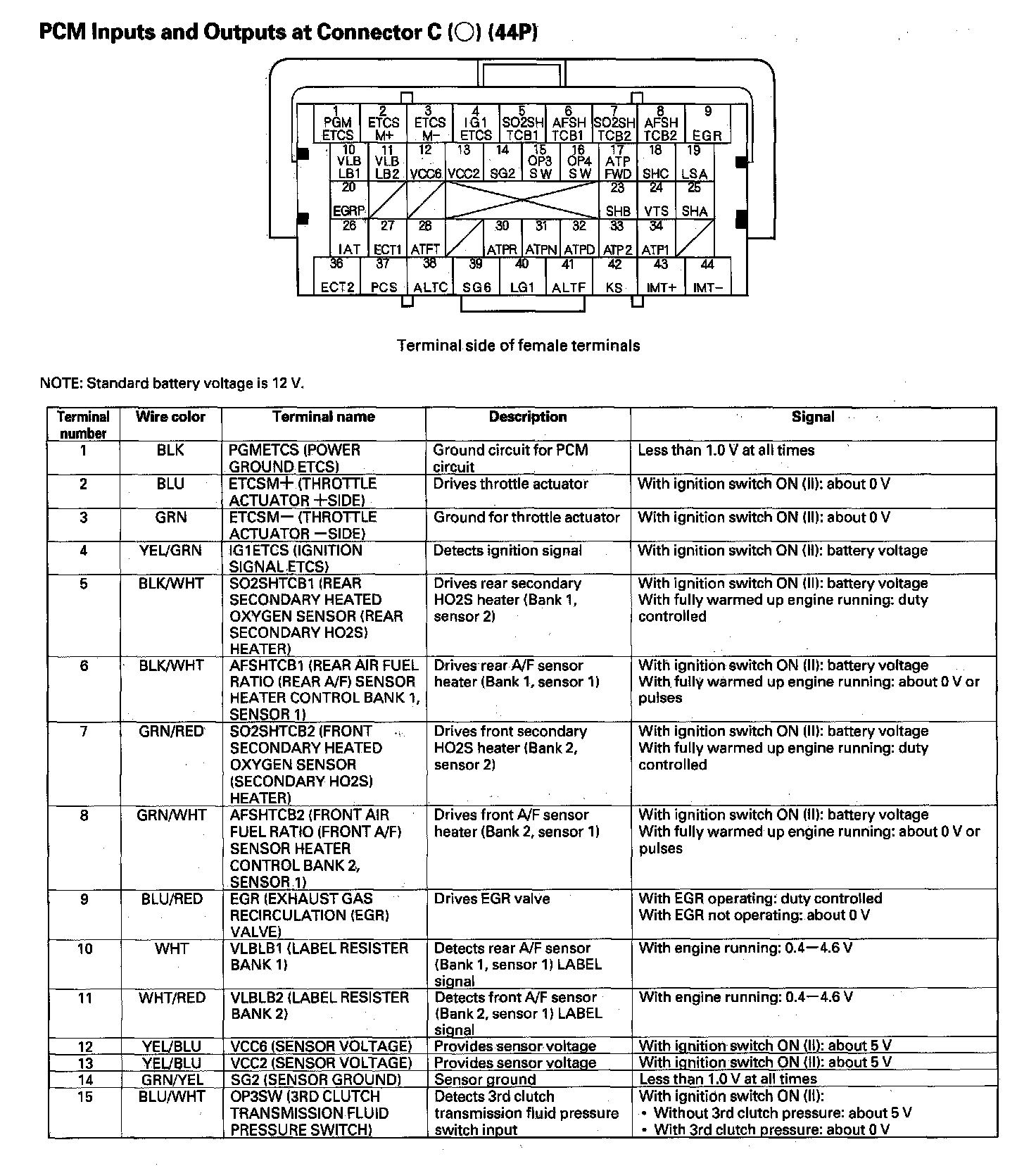 PCM Inputs and Outputs at Connector C (44P) Part 1: