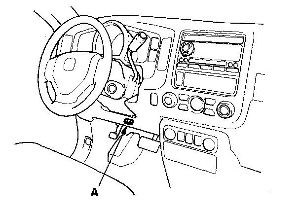 2. Connect the HDS to the data link connector (DLC) (A) located under the driver's side of the dashboard.