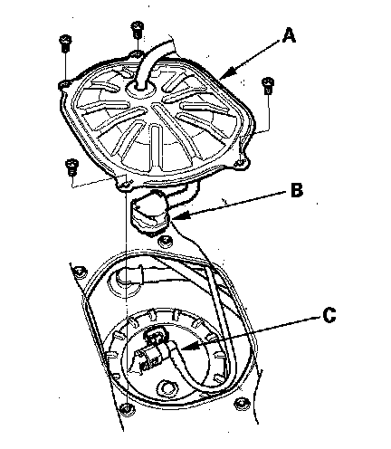 6. Disconnect the quick-connect fitting (C) from the fuel tank unit.