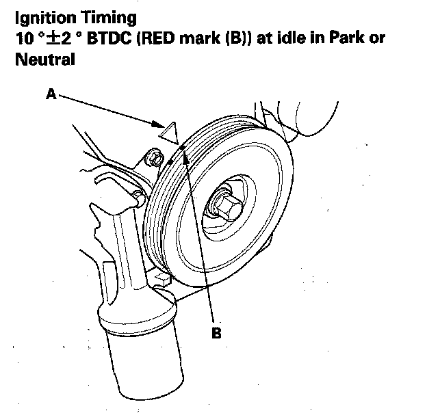 Ignition Timing Inspection1. Connect the Honda Diagnostic System (HDS) to the data link connector (DLC), and check for DTCs. If a DTC is present, diagnose and repair the cause before inspecting the ignition tinning.